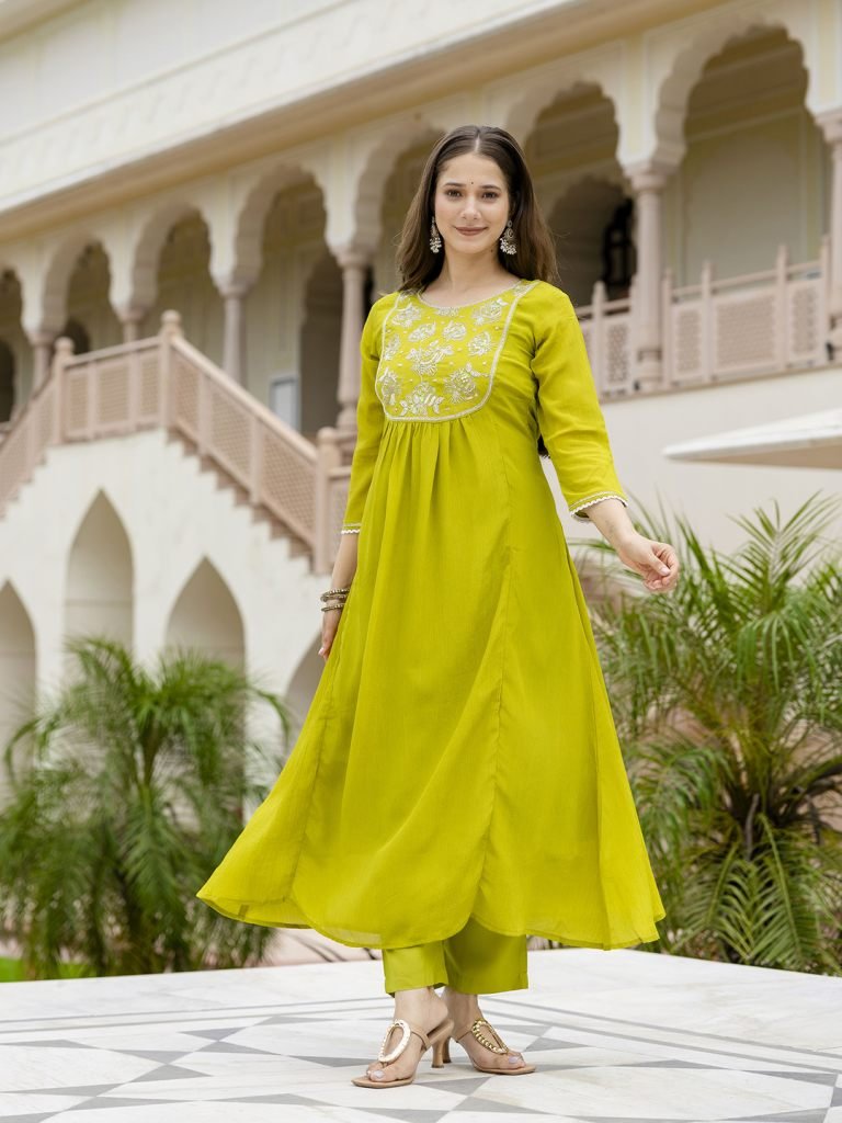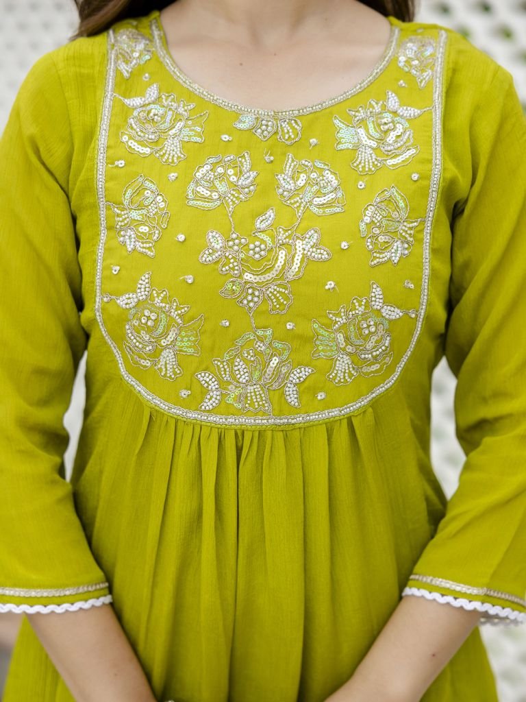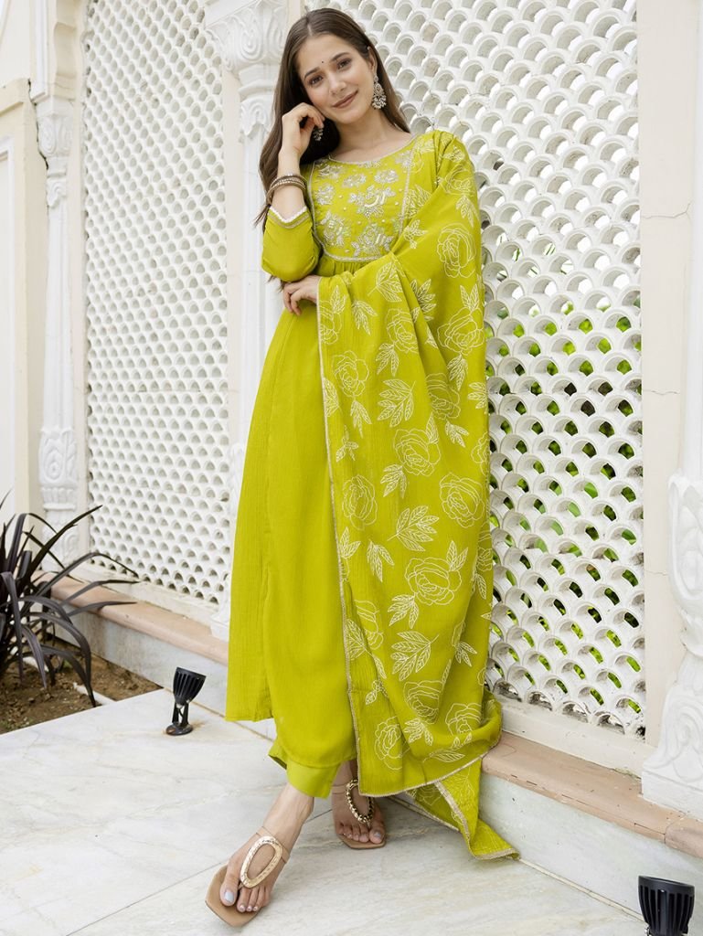 Kurti = StitchedKurti Material = ChinonWork = Beads EmbroideredBottom = StitchedBottom Material = RayonDupatta = StitchedDupatta Material = ChinonDupatta Length = 2.10 Meter
