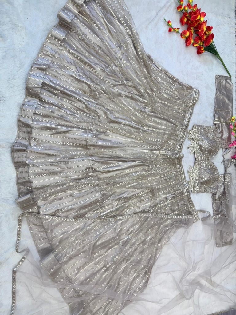 Premium Soft Butterfly Net Embellished With Beautiful Embroidery, Jari Work, And Heavy Sequins Work. Designed With Heavy Cancan And Canvas, Double Inner Covering, And 3.5 Meter Flair. Semi-stitched Up To Xxl.