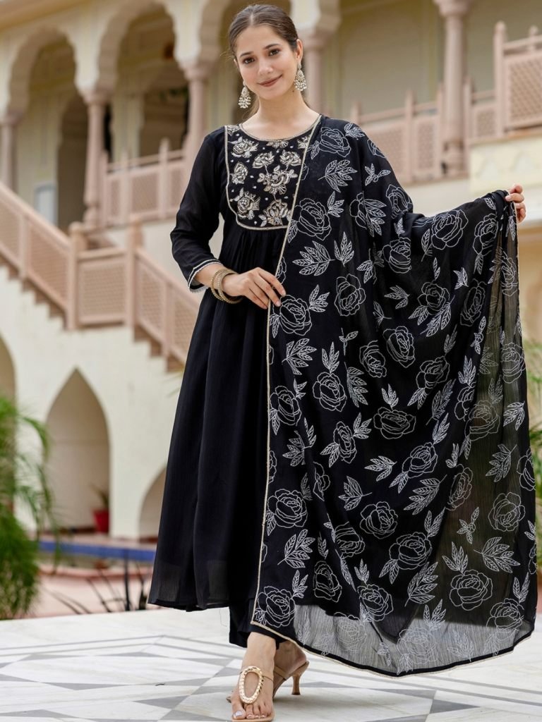 Kurti = StitchedKurti Material = ChinonWork = Beads EmbroideredBottom = StitchedBottom Material = RayonDupatta = StitchedDupatta Material = ChinonDupatta Length = 2.10 Meter