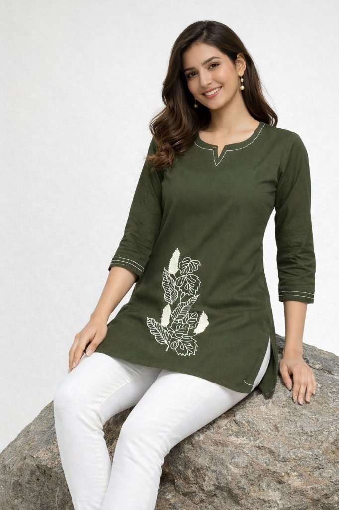 Clothes Details Top- Dhabu Cotton ,Designer Hand Embroidery Work Butta Top Length -28 Size -M,L,Xl,Xxl