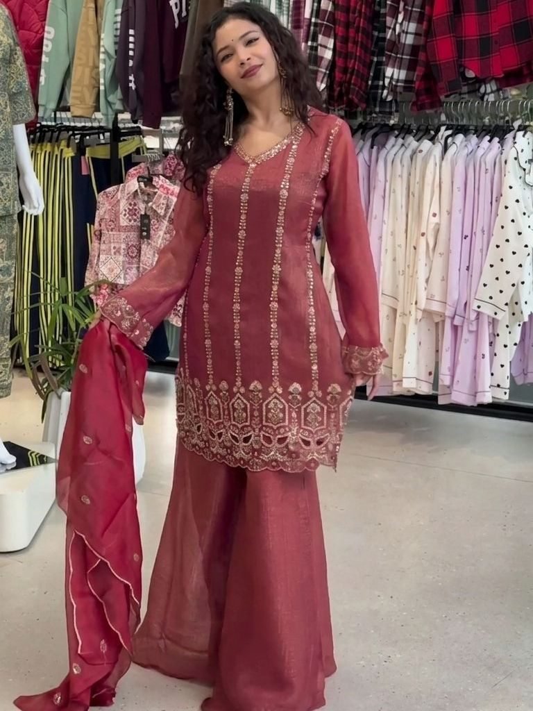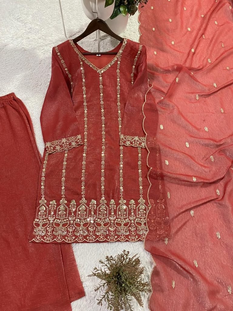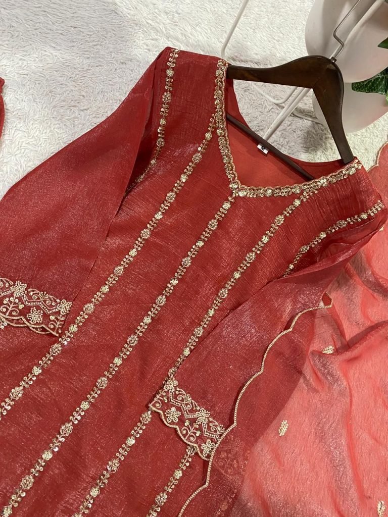 Fabric: Crunchy With Sequence Embroidery Work