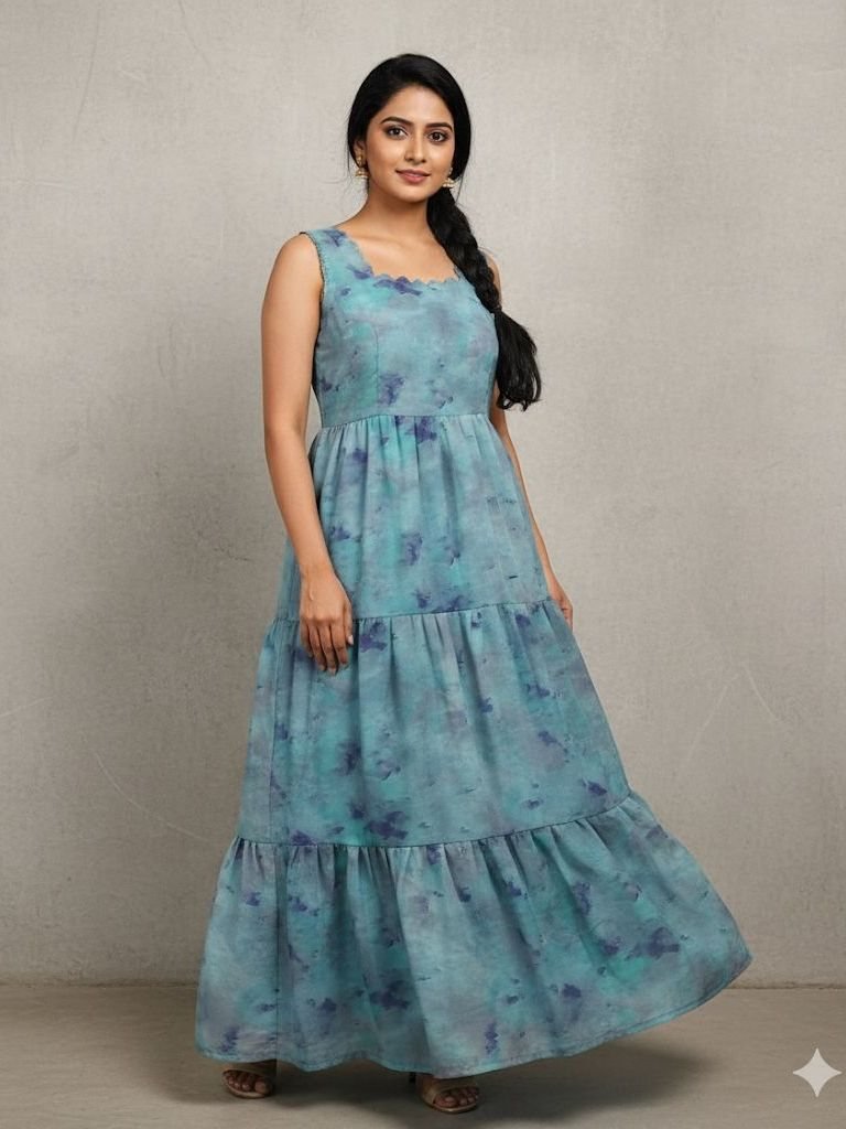 Material:- Fox GeorgetteComplete LinningLength:- 47Sleeves :- Sleeve LessFlare 3.5 MeterSize S-36 M-38 L-40 Xl-42 Xxl-44