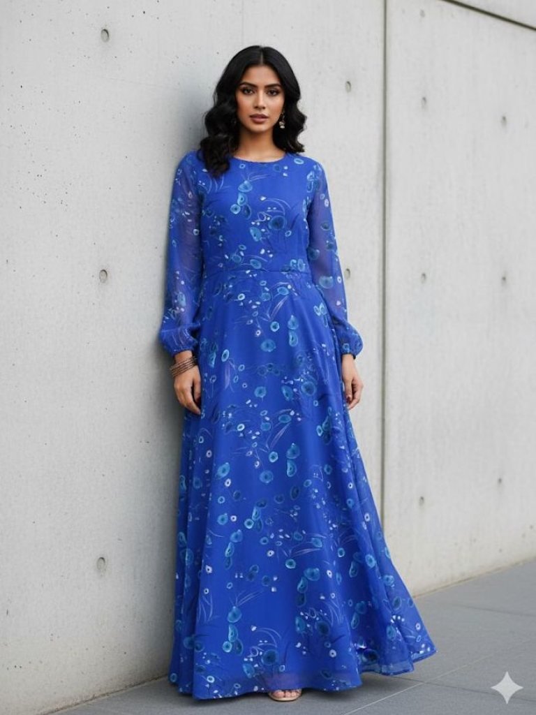 Material:- Fox GeorgetteComplete LinningLength:- 47Sleeves :- Sleeve LessFlare 3.5 MeterSize S-36 M-38 L-40 Xl-42 Xxl-44