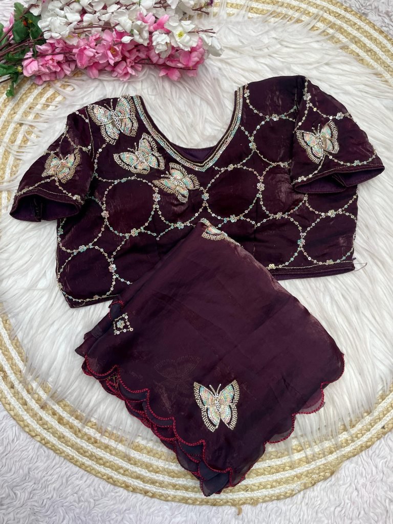 Product Details :-Fabric : Fandy Sattin Blouse : Fandy Sattin Fabric With Brits Work ( Sitch Blouse38+42)Work : Beautiful Khatli Brits Work Along With All Over Arco Bodar