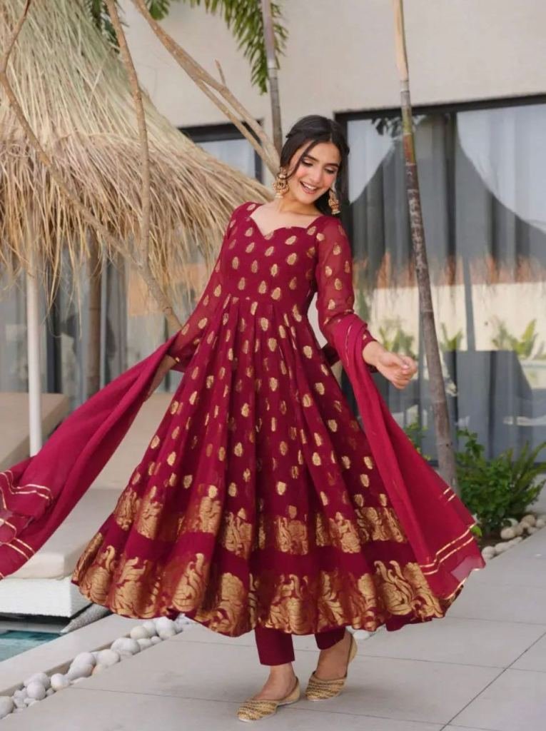 Gown Fabric : Havy Foux Goargate With Embroidery Work And Full Sleeves