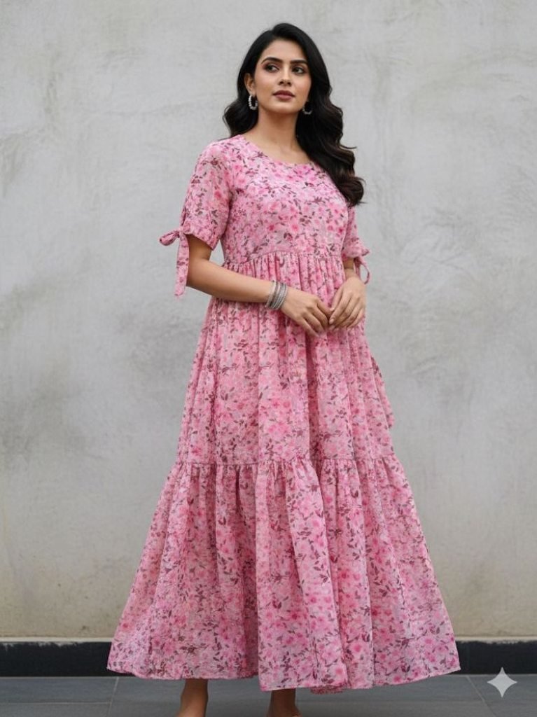 Material:- Fox GeorgetteComplete LinningLength:- 47Sleeves Short Sleeve Flare 3.5 MeterSize S-36 M-38 L-40 Xl-42 Xxl-44