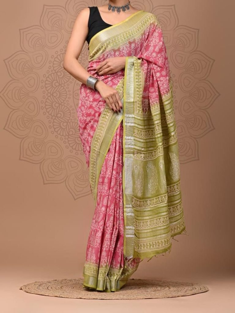 Fabric :- Linen Saree With Beautiful Digital Printed Pallu Silver Jari Weaving BorderBlouse :- Running Colour With Digital Printed Cut :- 6.30 Meter