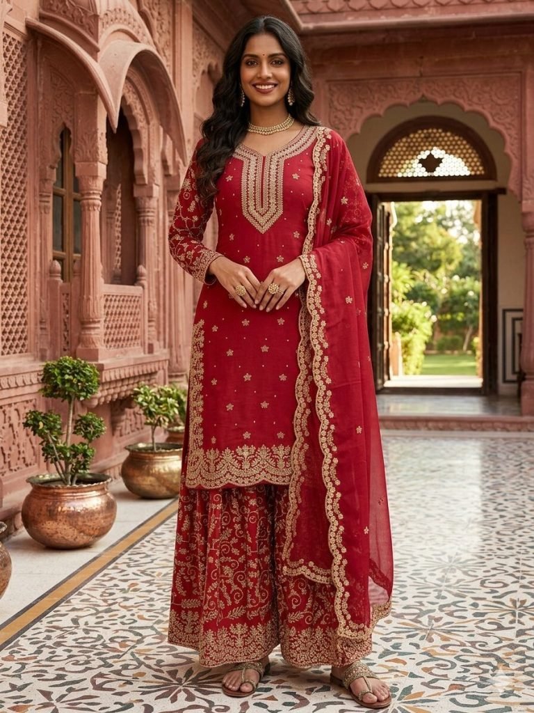 Plazzo Fabric: Pure Gmy Silk With Heavy Embroidery 3 Mm Sequence And Coding Dori Work With Moti Hand Work
