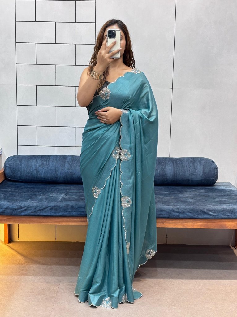 Product Details :-Rich Two Tone Chocolate Fabric Rich Shining With Diamond Swan Cut WorkWith Running Blouse Cut 6.30