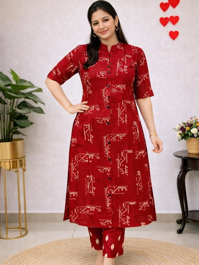 Co-Ord Set In Aline Kurti Pattern Paired With Ankle Length Pant Giving Perfect Outfit And Deliberate Choice About Your Look.....