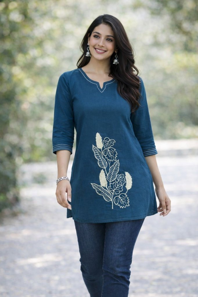 Clothes Details Top- Dhabu Cotton ,Designer Hand Embroidery Work Butta Top Length -28 Size -M,L,Xl,Xxl