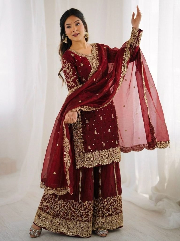 Design: Embroidery Codding And Sequence Work With Lace Border