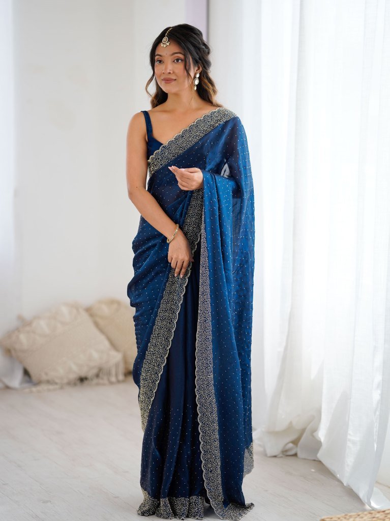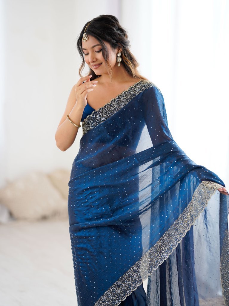 Fabric -: Fendy SatinWork: Zarkan Hand WorkBlouse Type: 0.8 Meter Un-stitched