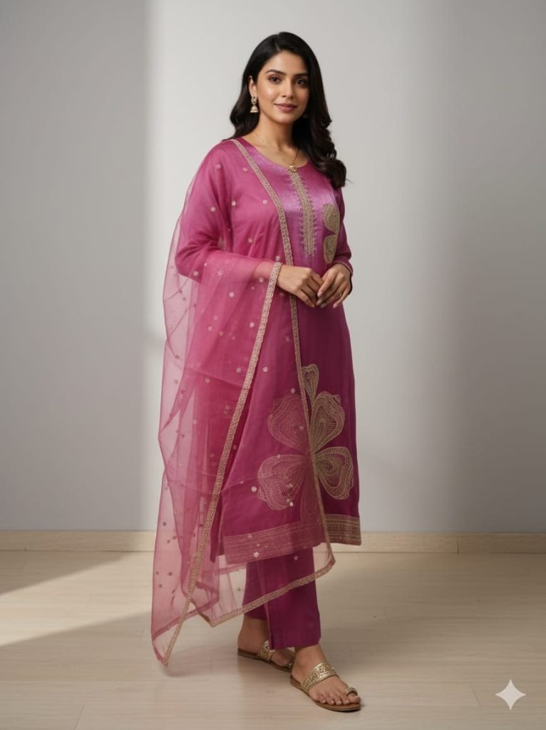 Fabric : Art Silk ( Premium Quality)Top : Khatli Work With Machine Tread Work ( Inside Cotton Micro Astar ) Pent : Art SilkDupatta: Organza With Work Size : M L Xl Xxl