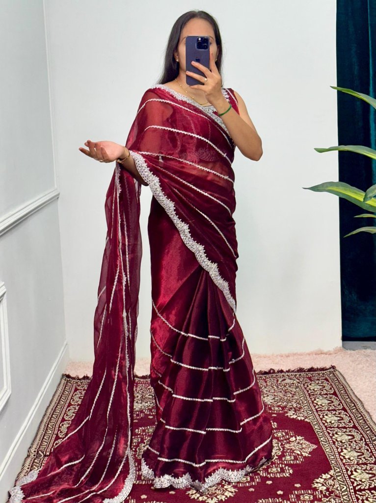 Work:- Full Heavy Embroidery Zari Work Patta With Cut Work Border 5.5 Meter
