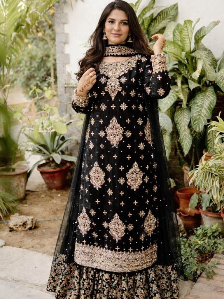Sharara : Heavy Georgette With Fully Embroidery Work & Real Mirror Work (Fully Stitched)