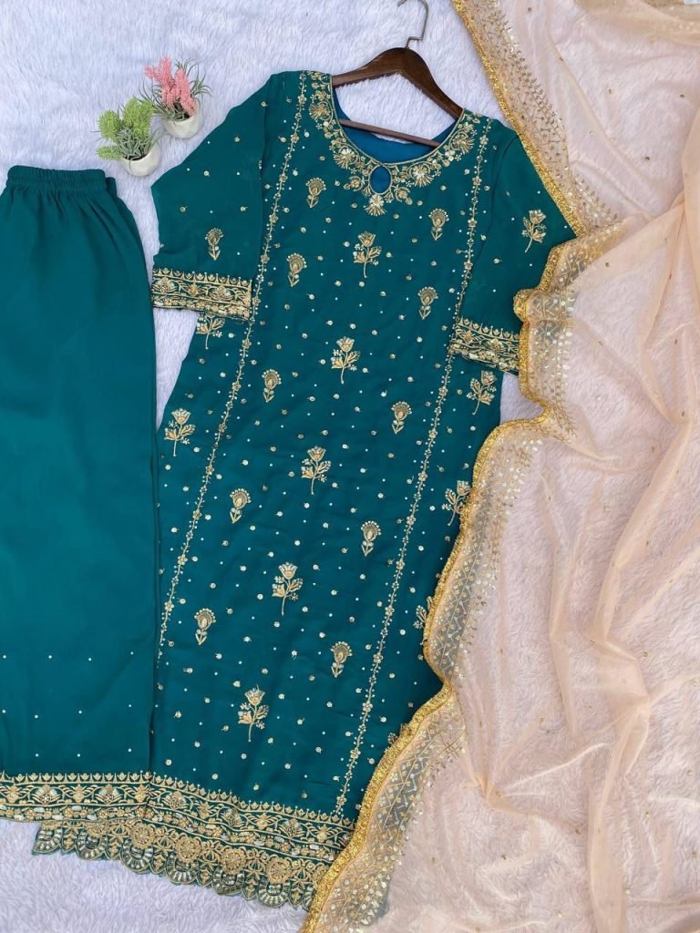 Silver Gold Net Sequence Embroidery Work With Border Heavy Lace Work Dupatta (2.2 Mtr)