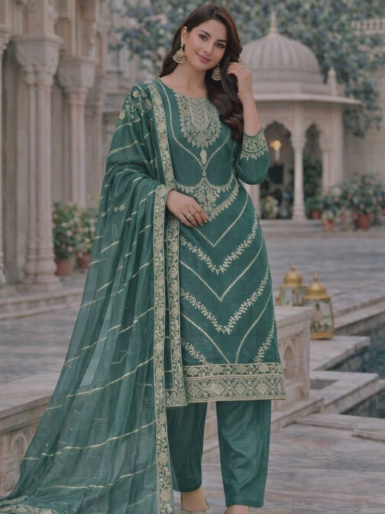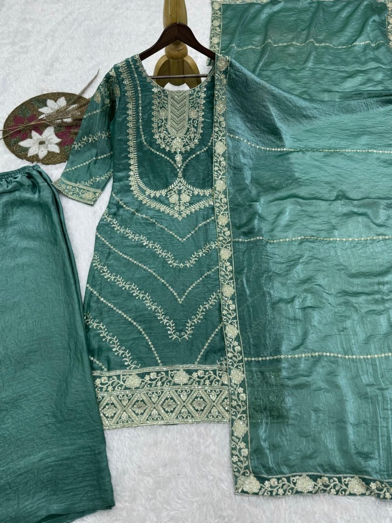 Embroidery Work Rama Colour Palazzo Suit