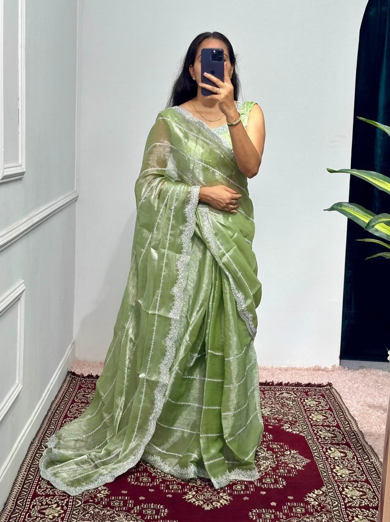 Fancy Green Burberry Saree With Heavy Zari Embroidery