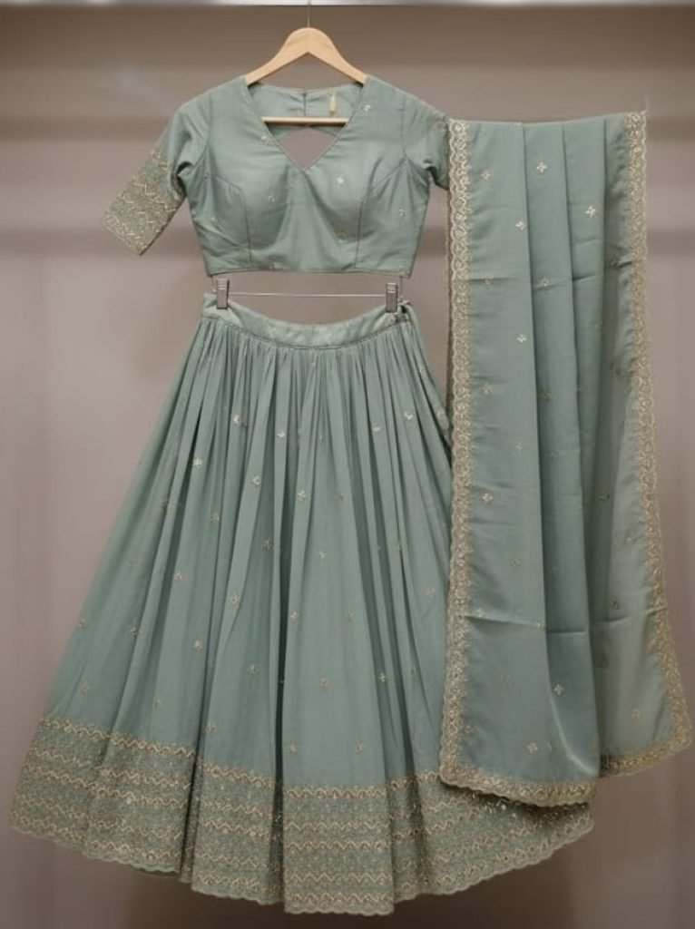 Product Details :-Pure Simmer Tissue Silk Gotta Work Chaniya Choli4 Meter Flare Simmer Tissue Silk Fabric L Size Skirt And Blouse 42 Waist 42 Length L Size Blouse With Margin Heavy Lining And Heavy Canvas