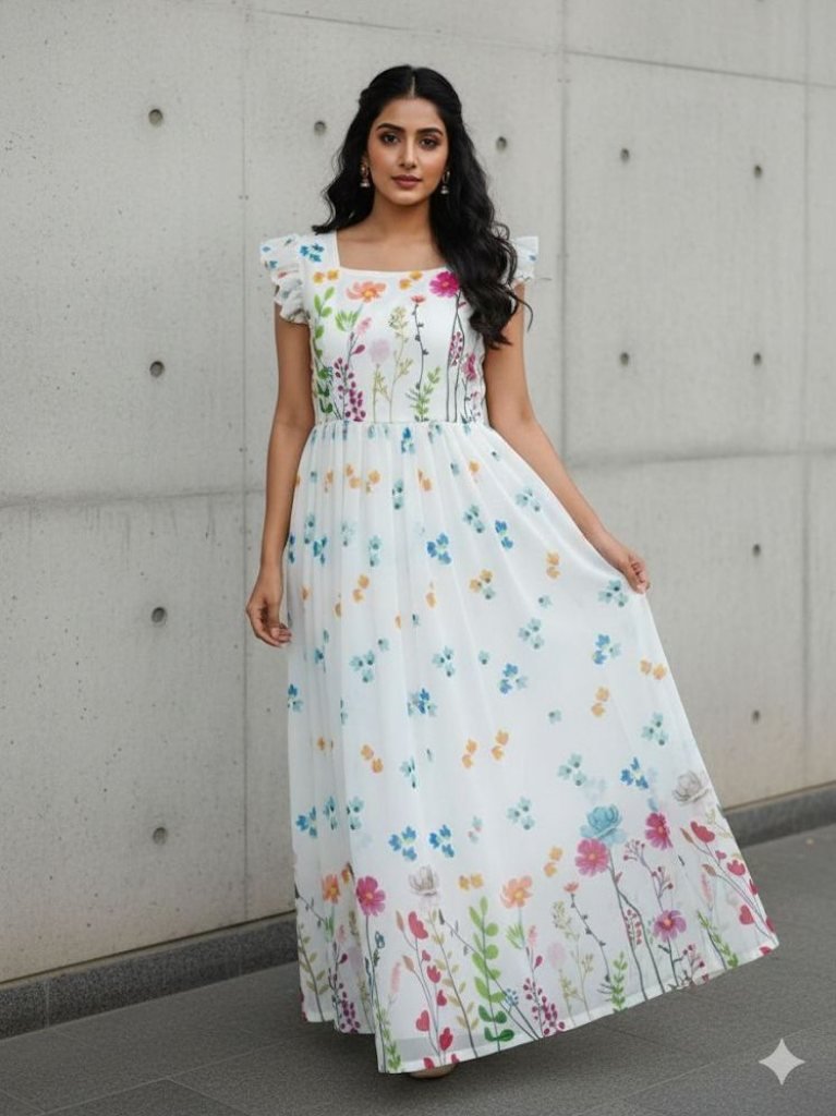 Material:- Fox GeorgetteComplete LinningLength:- 47Sleeves :- Sleeve LessFlare 3.5 MeterSize S-36 M-38 L-40 Xl-42 Xxl-44