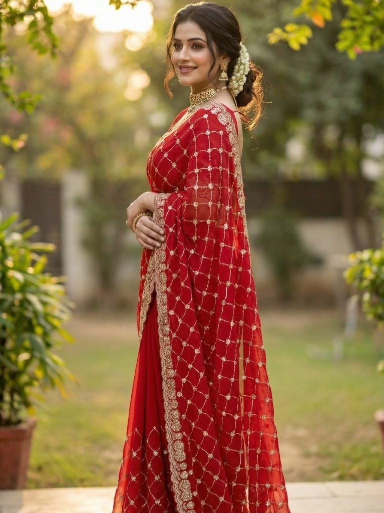 Saree:- Pure Fandy Chiffon Silk With Beautiful Sequence Embroidery Work With Cut Work BorderBlouse:- Paired With Fandy Sattin Heavily Worked Fancy Blouse