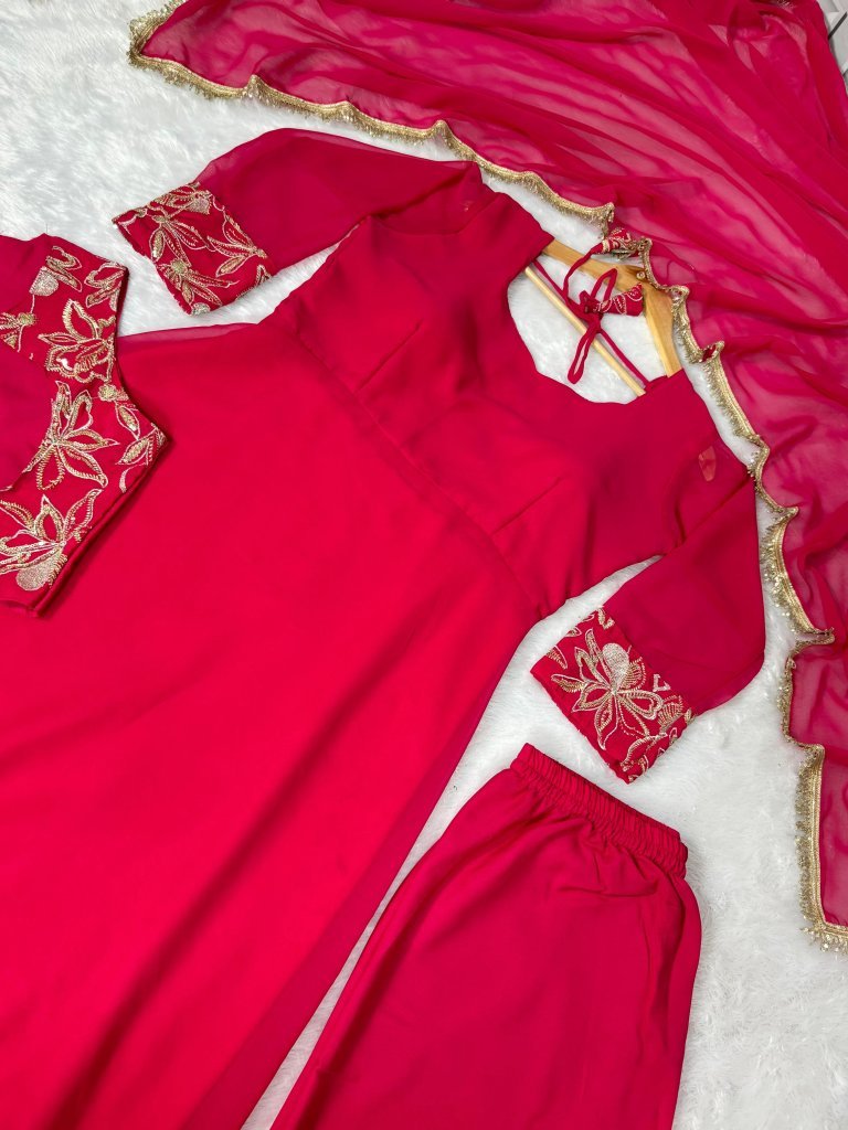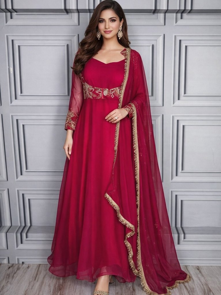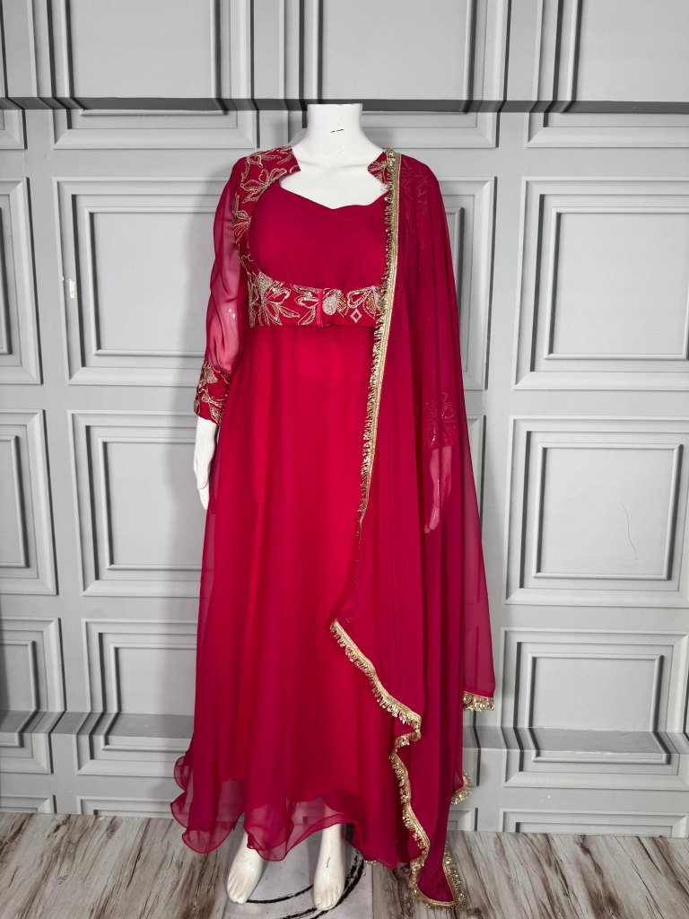 Gown : Heavy Faux Georgette (52") Flair:- 5 Mtr Lining : CrapePent : Micro Dupptta: 2 mtr Georgette & 4 Side Lace Work Sizes :*38 (M), 40 (L), 42(Xl) , 44(2xl)