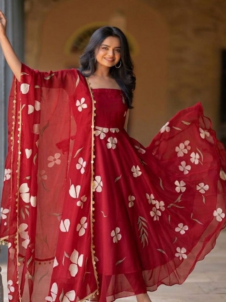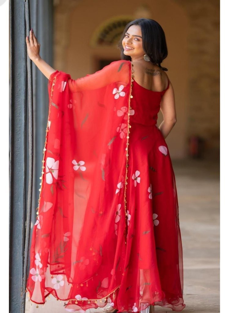 Gown -Floral Printed Organza Anarkali 4.5 Mtr Flair