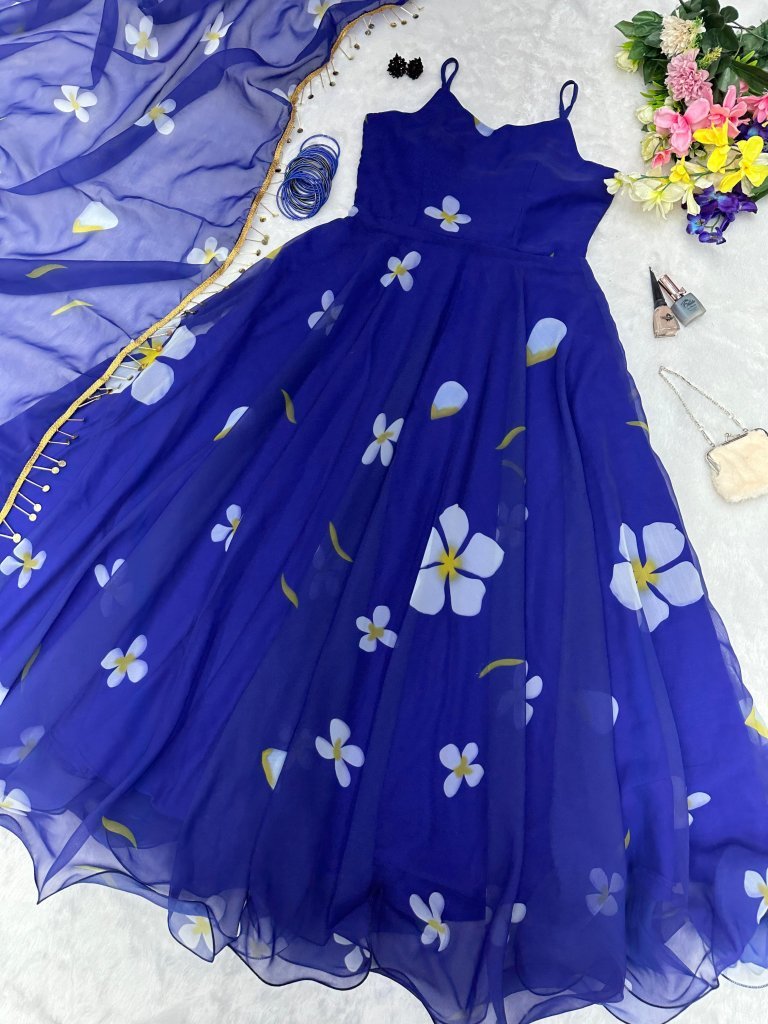 Gown -Floral Printed Organza Anarkali 4.5 Mtr Flair
