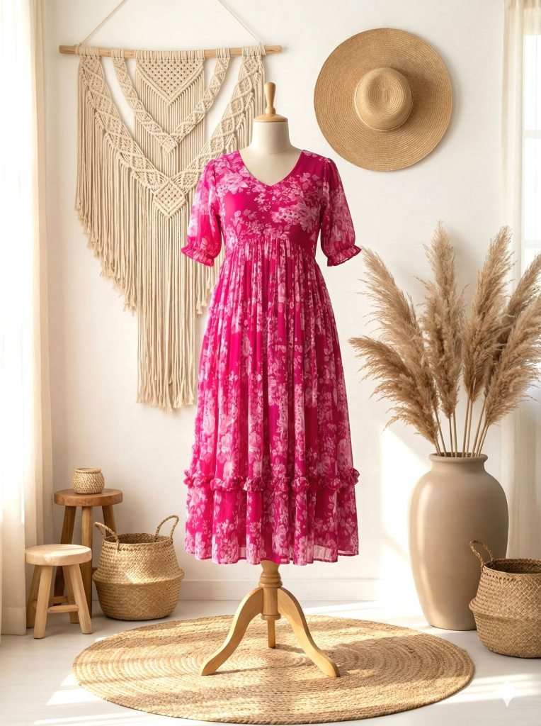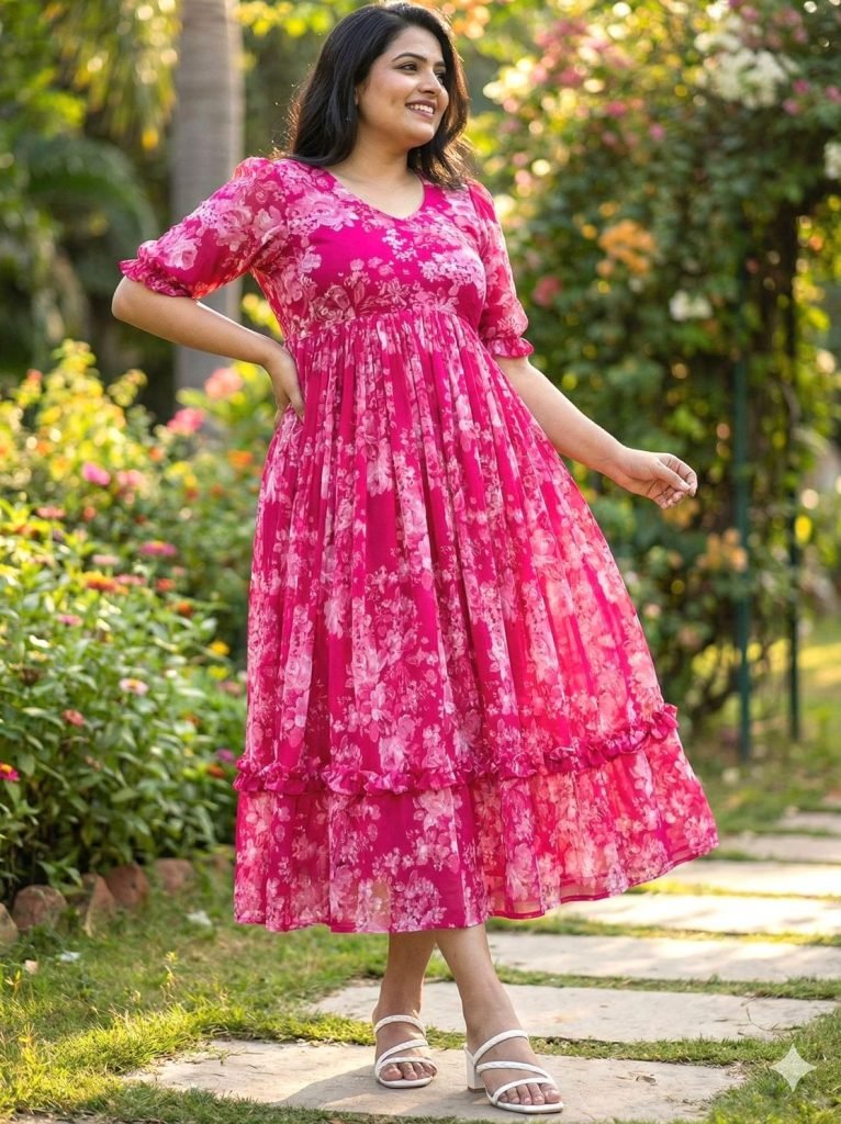Dress To Impress In Our Stunning Georgette Maxi Set! Elegant Floral Prints On Soft Smooth Georgette Fabric Make You Stand Out With Style. Perfect For Any Occasion!