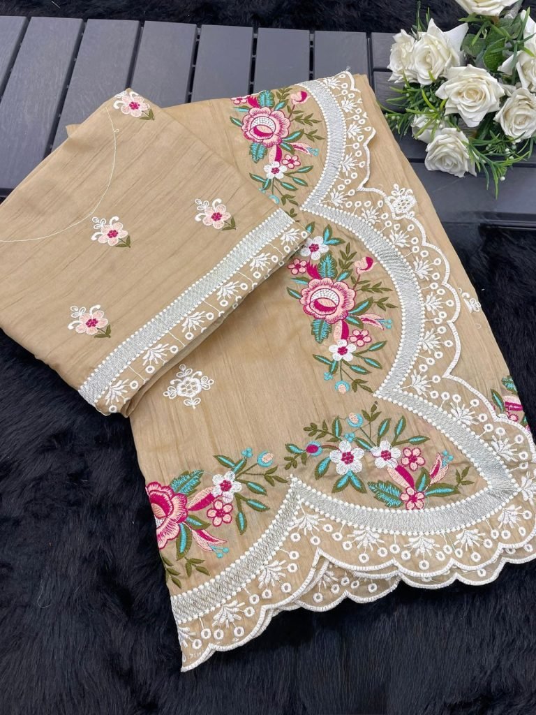 Paired with a matching embroidered blouse, this saree is designed to elevate your ethnic wardrobe with its classic yet graceful appeal. Whether itโs a wedding, celebration, or festive gathering, this saree will make you the center of attention.