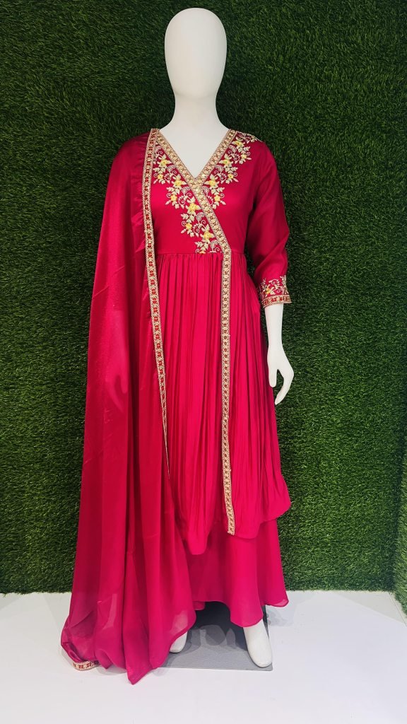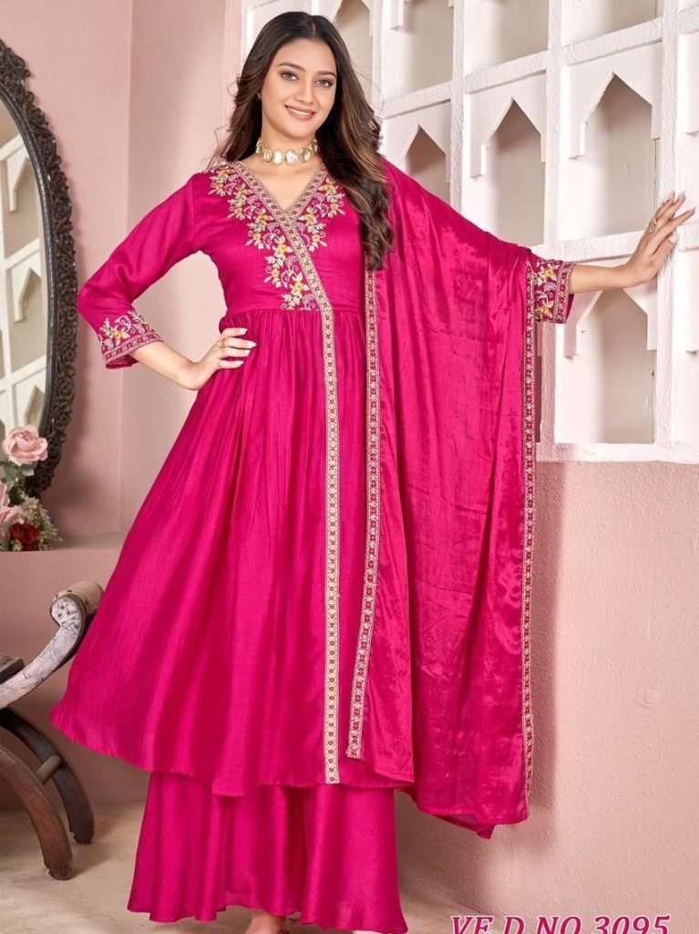 Top Bottom Fabric :- Vichitra Silk With Embroidery Work ( With Inner ) 3/4 Sleeves With 2.15 Meter Duppata