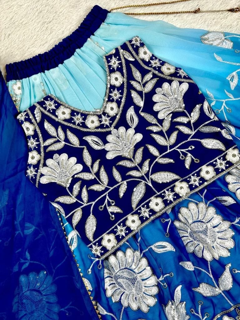 Fabric :-Heavy Blooming Georgette With Embroidery Sequence Work With Soft Printed Work & Fancy Latkan Dori