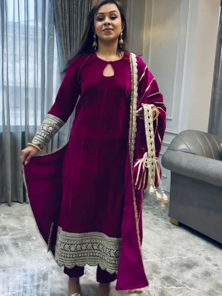 Top Fabric :Heavy Crash Viscose Velvet With Heavy Embroidery Work