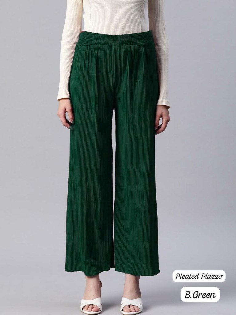 Wrinkle Free Bottom WearFabric: Heavy Lycra Pleated Elastic Waist Size: Free Size Upto Xxl(38 Waist) Length:39