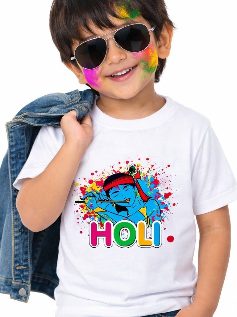 • Little Krishna Holi Print Kids T Shirt