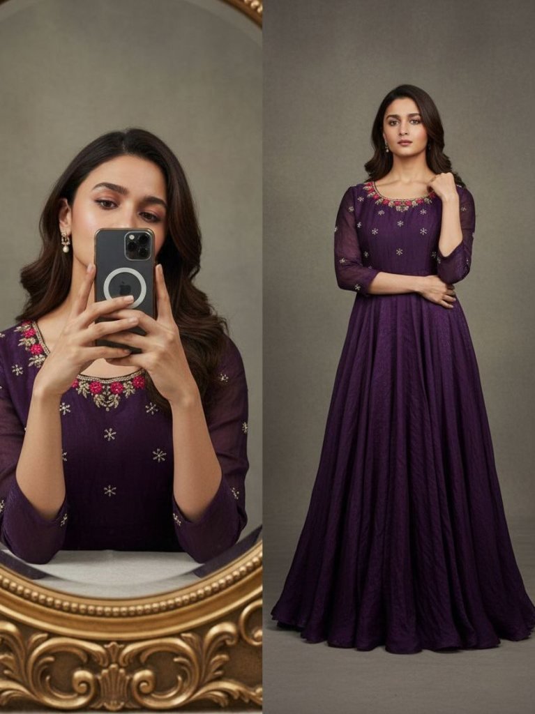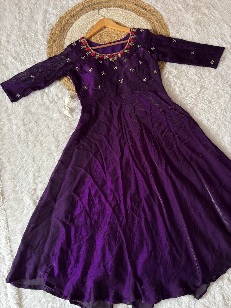 GownFabric :- Space Silk Work :- Moti Beads And Kardana Handwork Inner :- Micro CottonSize :- Xxs , Xs , S, M , L , Xl , Xxl , Xxxl Length :- 52 Inch