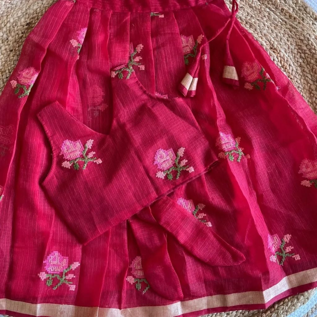 Flower Work Lehanga Set For Girls With Beautiful Designer BlouseFabrics Kota Chex With Cotton LiningSize Avl 1 Years To 15 Years