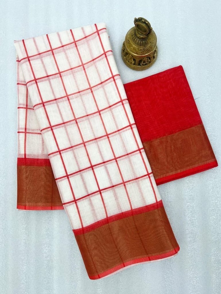 Saree Fabric - Linen With Gold Jari 5×5 Border Work - Digital Print.Saree Length - 6.30 Meter (With Digital Blouse)Blouse Fabric - Linen With Gold Jari 5×5 Border With Digital Print