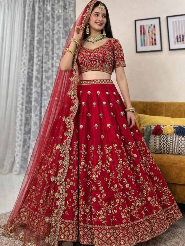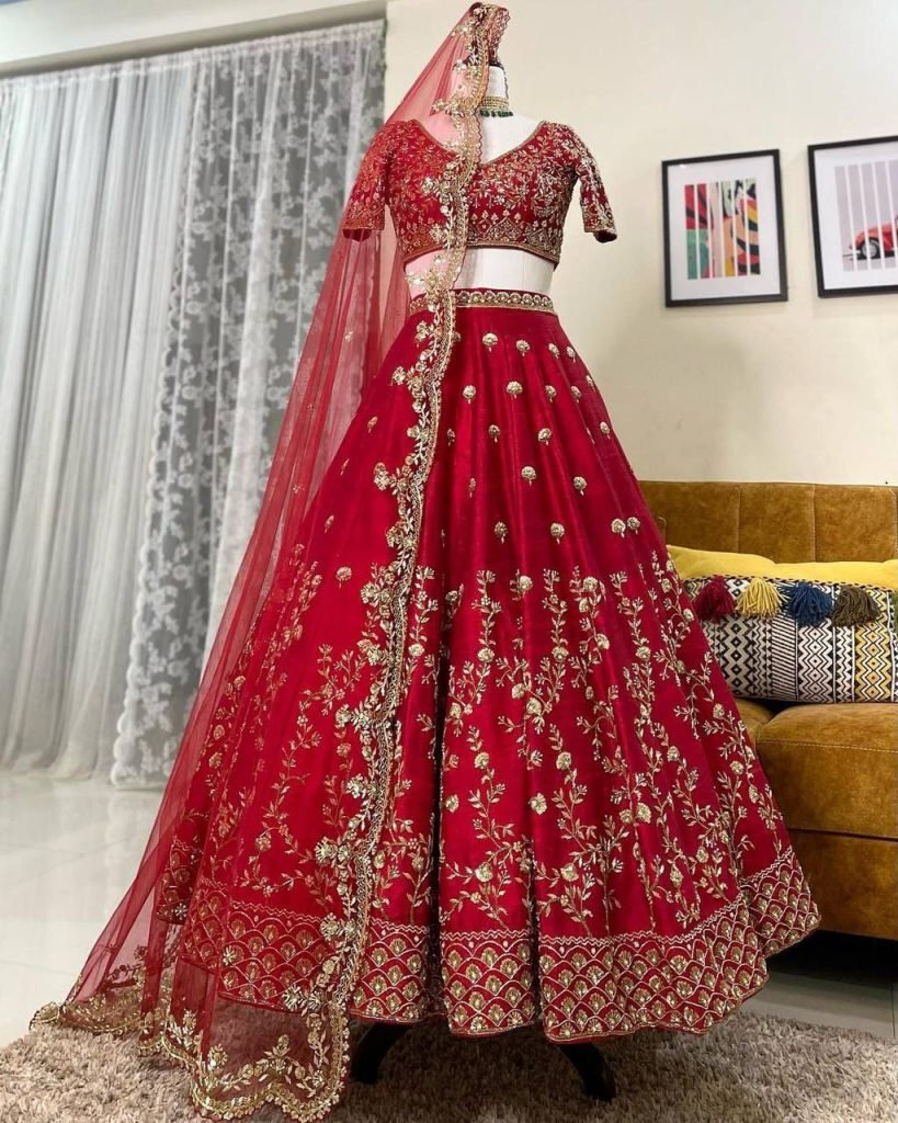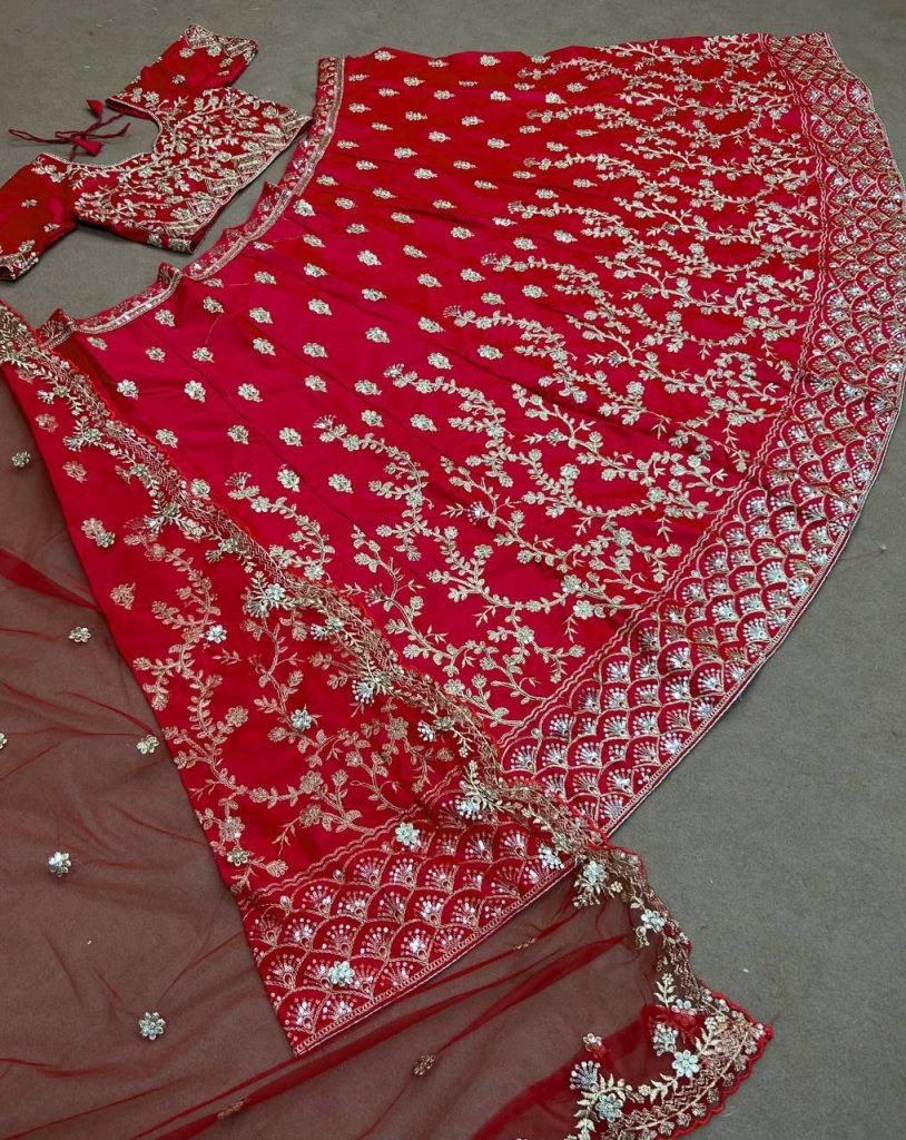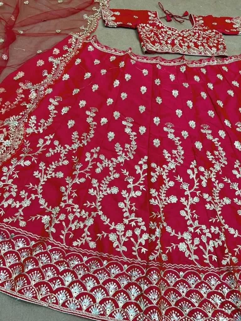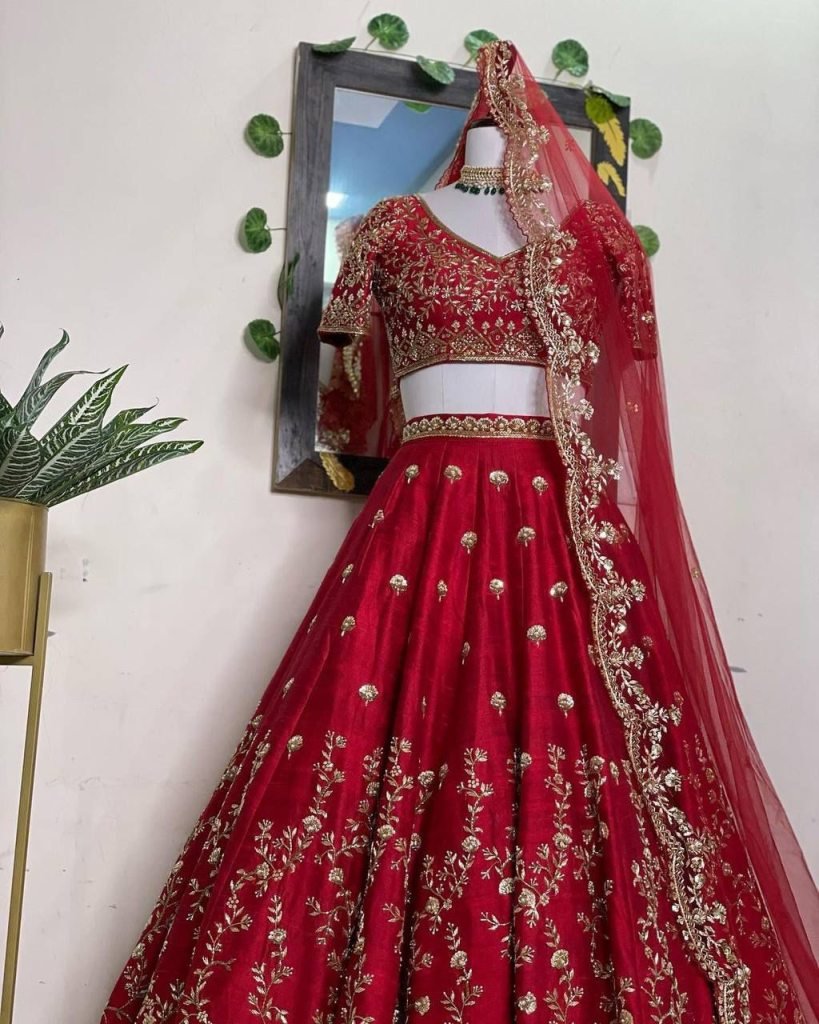 Fabric : Malay Satin Silk With Raw Silk Inner With 10 Kali Flair Come With Semi Stiched Type Lehengha