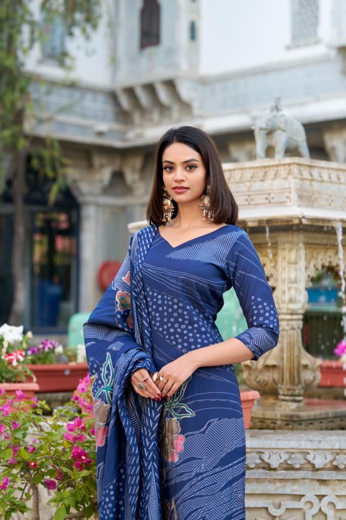 Paired with a plain Roman Silk bottom with elastic stitching for a perfect fit, this suit is completed with a printed Roman Silk dupatta of 2.4 meters, adding grace and charm to your look. Lightweight yet stylish, this ensemble is ideal for festive occasions, casual gatherings, or family celebrations.
