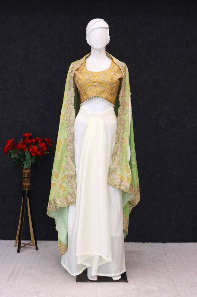 Work: Degital Bandhani Print With Embroidery Cording Work