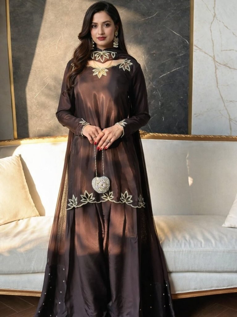 Top Fabric : Heavy Pure Natural Crap With Heavy Embroidery Work Moti Work