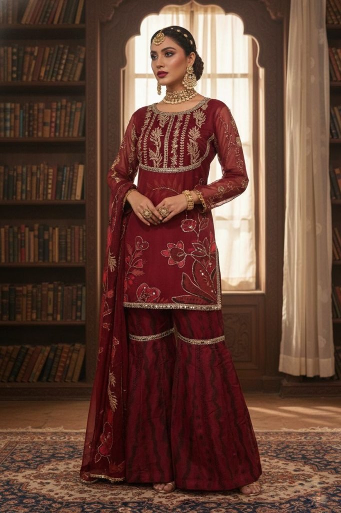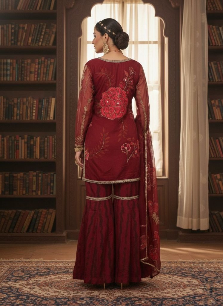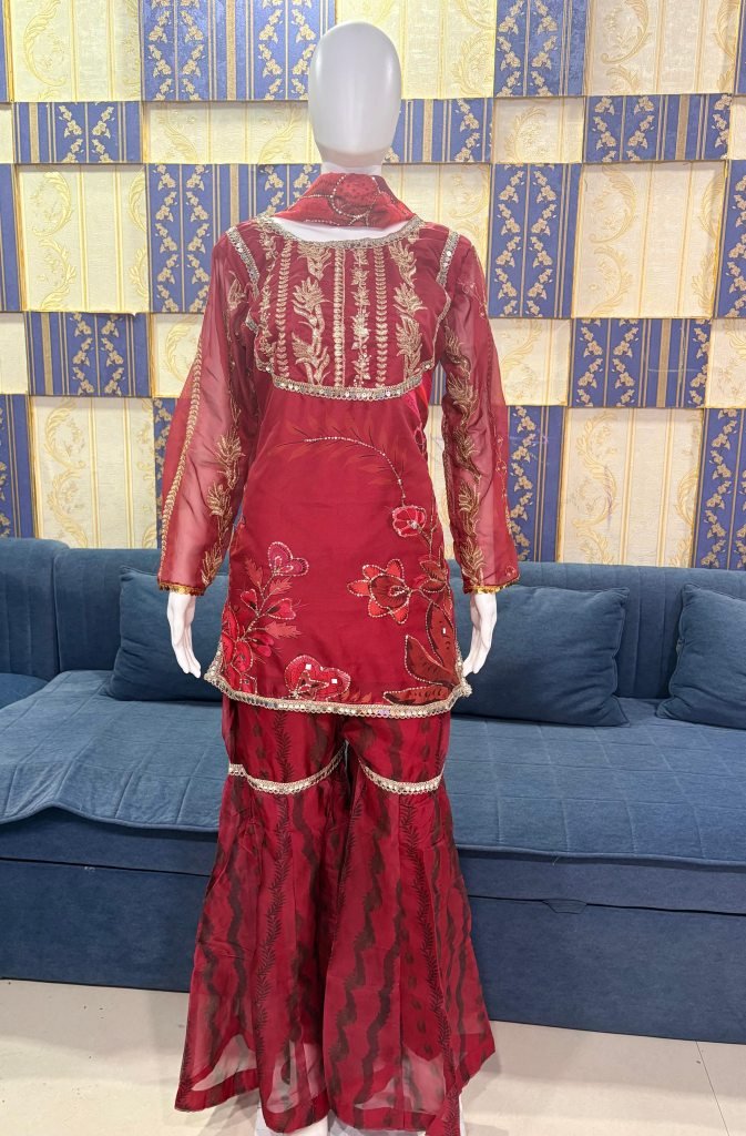 Top: Pure Tabby Silk With Real Mirror & Hand Sequins Work (Fully Stitched)