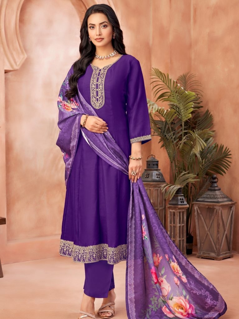 Top & Bottom – Premium Vichitra Silk With Elegant Embroidery Work (Comes With Inner)
