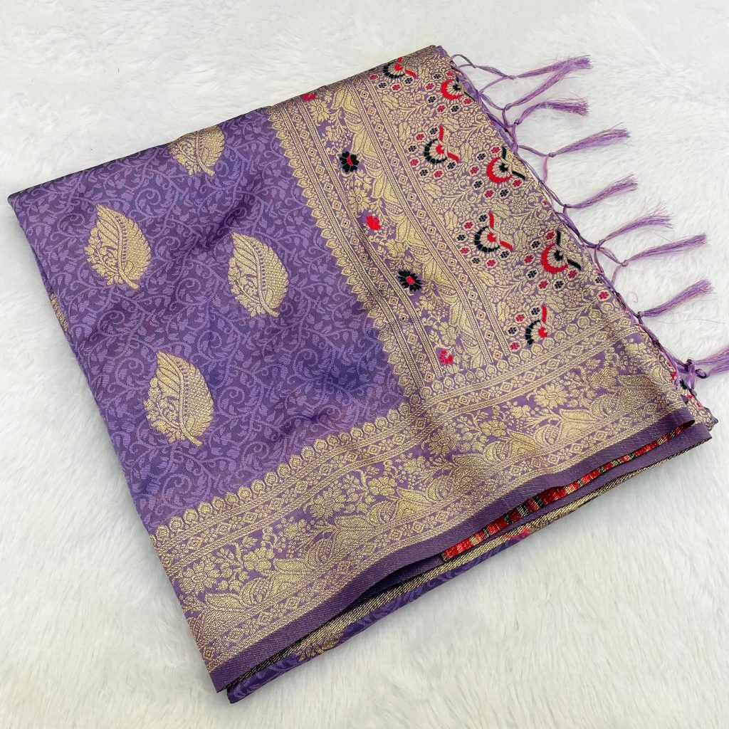 Elevate your style with this exquisite Purple Kamya Silk Saree from Fashion Bazar. Crafted from tissue soft silk, this saree offers a luxurious feel and graceful drape. Its Banarasi weaving adds a touch of traditional elegance, making it perfect for festive occasions, weddings, or special celebrations. Lightweight yet rich in texture, this saree ensures comfort without compromising on style.
