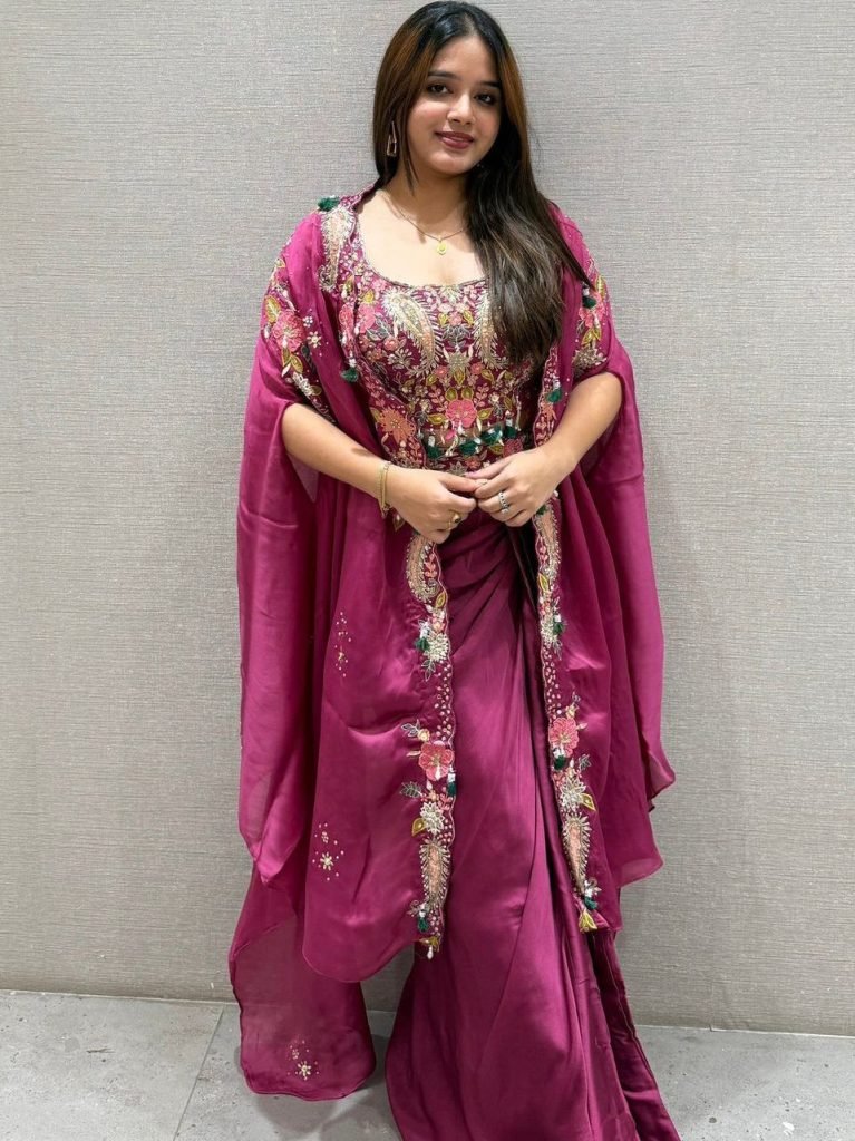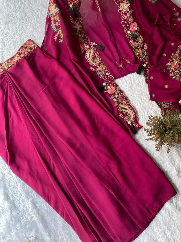 Rangoli Silk Fabric Rani Colour Choli Dhoti With Shrug