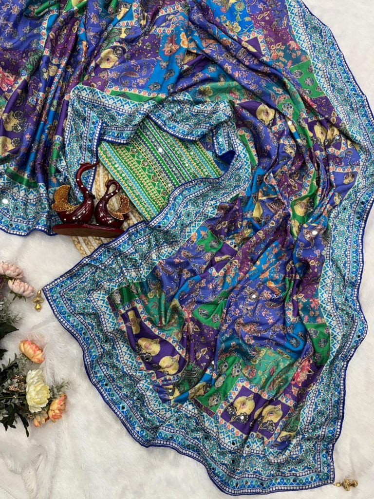 Blouse- Beautiful Print With Real Mirror In Chinnon