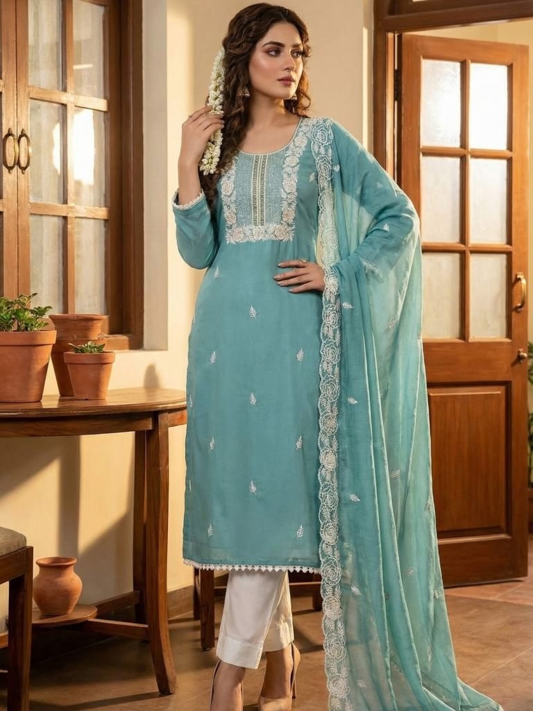 FabricsTop : Premium Roman Cotton With Embroidery & Hand WorkDupatta : Nasmin With WorkBottom : RayonInner : Cotton