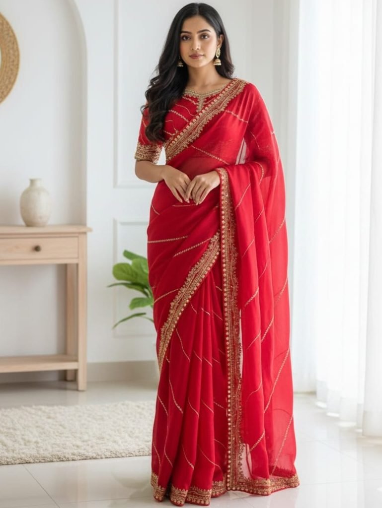 Paired With Fully Stiched Embroidery Sequence Work Blouse On Running Fabrics